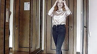 Fucked handcuffed college girl through her sweet panties with cumhoot on her bubble butt