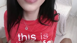 step sister sees how I jerk off, fucked and cum in her full mouth