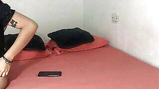 While I was hiding I discovered my stepmother masturbating in her room watching porn - Porn in Spanish