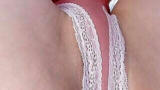 Lady in white with a shaking orgasm