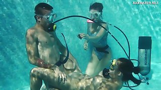 Diving instructor fucks nice babe in scuba Lizzy under the water