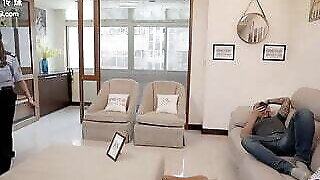 HOT Asian WIFE with big boobs CHEATING with colleague even when Husband CALLS then SUCKS & FUCKS CUM!