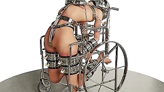 Slave Hardcore Cuffed and Chained in a Wheelchair Metal Bondage BDSM